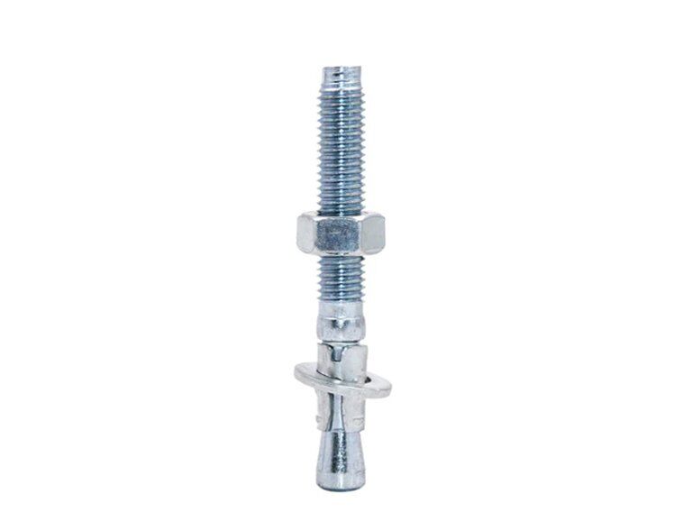 A Wedge Anchor is a heavy-duty mechanical fastener designed for anchoring into solid concrete, masonry, or stone substrates. It consists of a threaded steel stud, an expandable wedge sleeve at the base, and a hex nut and washer assembly. The anchor is installed by drilling a hole to the specified diameter and depth, inserting the anchor, and tightening the nut. As the nut is torqued, the wedge sleeve is pulled upward, expanding radially against the hole walls to create a secure mechanical interlock.